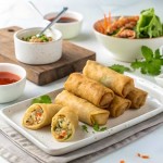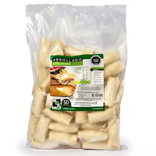 Arrollados primavera con masa de trigo rellena de vegetales, proteína de soya y carne vacuna, ideales para preparaciones asiáticas.