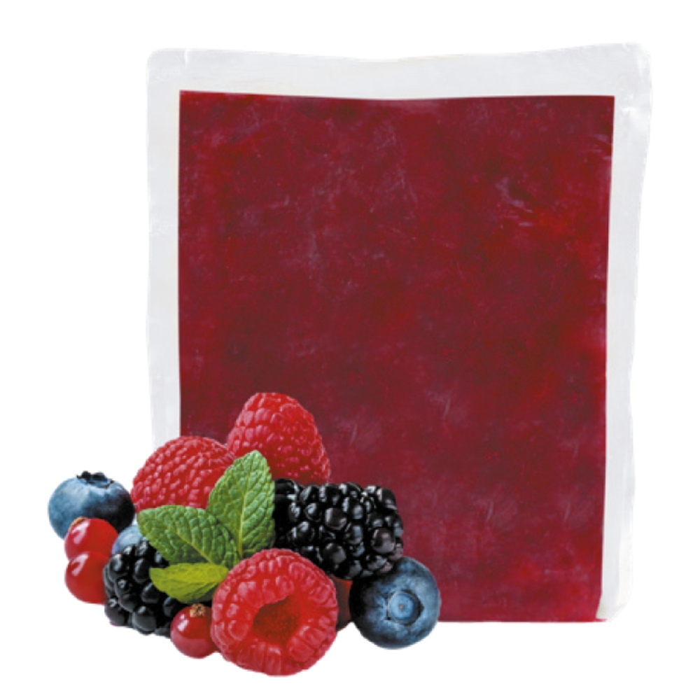 Mix Berries sin semilla, con azúcar. Marca: Bou. Presentación: 10 bolsas de 1 kg.