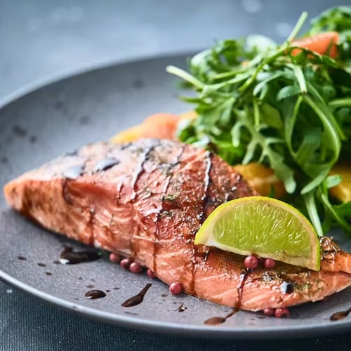 Filete de salmón Salmo salar Trim D con piel, congelado IQF para mantener su textura y sabor, ideal para preparaciones profesionales.