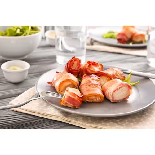 Tocino laminado ahumado con virutas de madera, de sabor intenso y alta calidad, ideal para cocina profesional y preparaciones gourmet.
